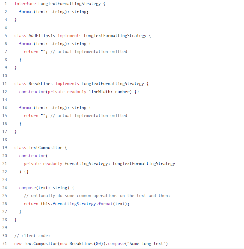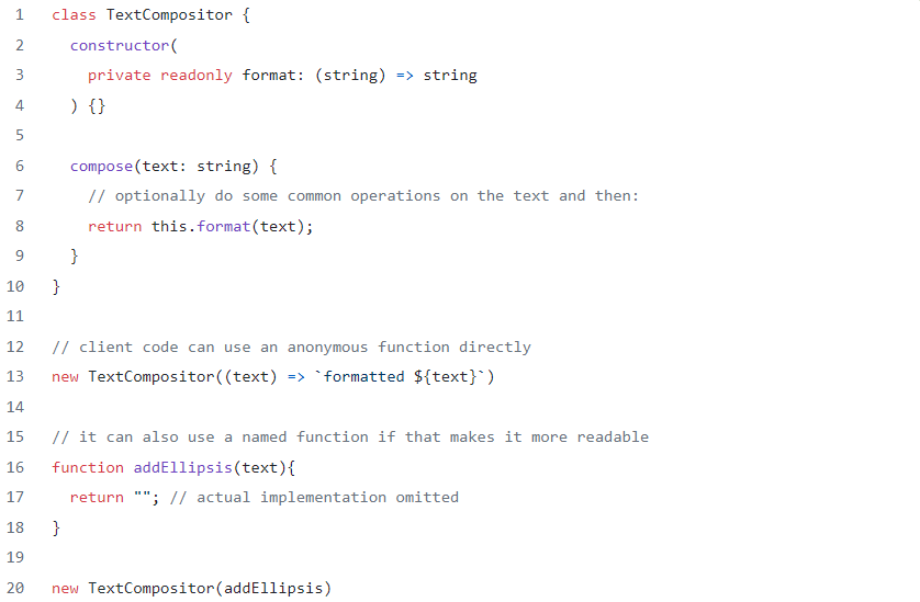 Note that most object-oriented languages made a similar thing possible already with lambda expressions. If our strategy needs to hold some state, we can still work with functions. We can use a closure in that case.