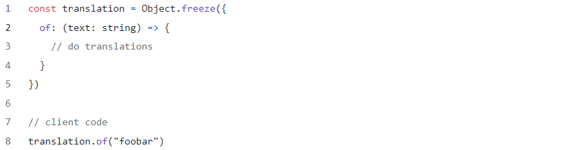 That is quite a lot of boilerplate we need to type even before we start implementing the actual translation logic. What may also be surprising is that the instance isn’t perfectly protected against being changed. We could make it a bit better by using a symbol to refer to the instance, using the JavaScripts # notation for private fields, making everything read-only, .etc., but before we make the singleton even more complex let’s consider different options.