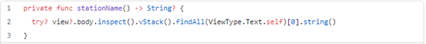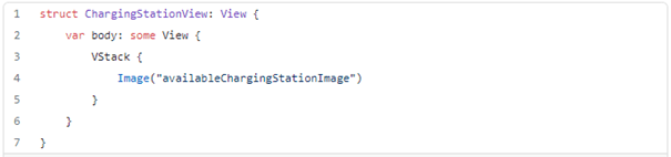 There are two ways of seeking view elements. The first one is done by using indexes of elements in the view hierarchy. In the below example, we are getting the value of Text struct which is placed in VStack at index 1 (At index 0 is an image of charging station). This solution is very prone to changes of view under tests. If we change the order of elements we will need to adjust indexes in our private methods.