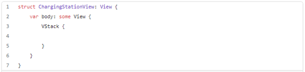 When the test case is done we need to write minimal code just to allow build and see the red stage. Generally, it means that we need to create ChargingStationView with empty VStack in the body and launch the test. This stage seems to be silly but it shows that our test case is valid and can be launched.