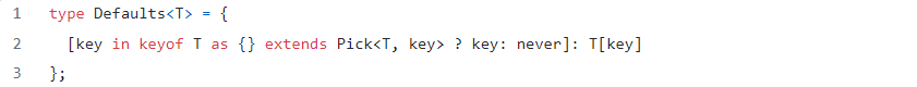 While it may look a bit scary for the uninitiated in TypeScripts mapped types, all this does is keep the optional properties of a given type T and remove all the required properties. This could become a utility type like the built-in Omit, Pick and other similar types.