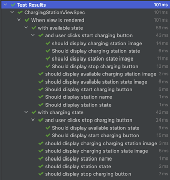 In this short example, we introduced the view model which is capable of station state management and view, which is ready to react to changes. Additionally, the user can start charging on his/her charging station to get the vehicle ready for the tour. The most important is that we are sure that, everything is working fine in our application. How cool is it, huh?
