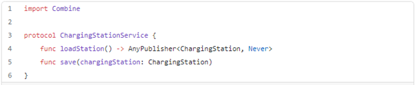 Let’s examine what is done here. So cuckoo command line tool is based on script generated mock of the service. Now we can create a new instance of the mock, define stubs on it and eventually inject it into the view model. Generally, in this step, we are going to teach our mock how it should behave. So we are saying when method loadStation() will be invoked on mocked service it should publish object with charging station in a free state. Here You can also find examples of how to handle Combine in tests. Method loadStation() returns AnyPublisher<ChargingStation, Never> to satisfy this requirement in test we created CurrentValueSubject with the charging station data. When the test case is launched with prepared stub in such a way, every time if there is a request to load station, the production code will get our test data.